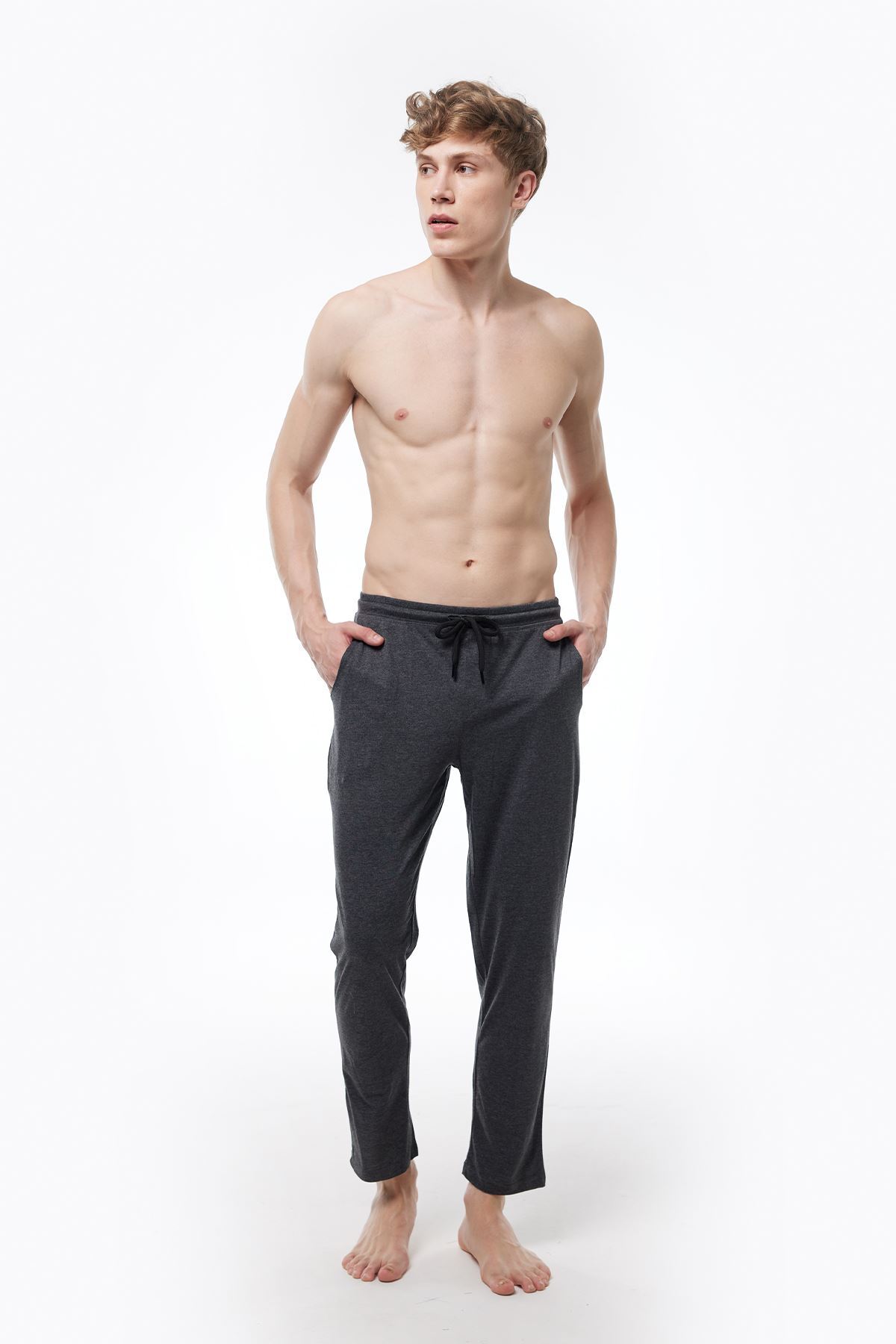Malabadi Erkek Antrasit Beli Lastikli Cepli Tek Alt Düz Paça Pijama 6003