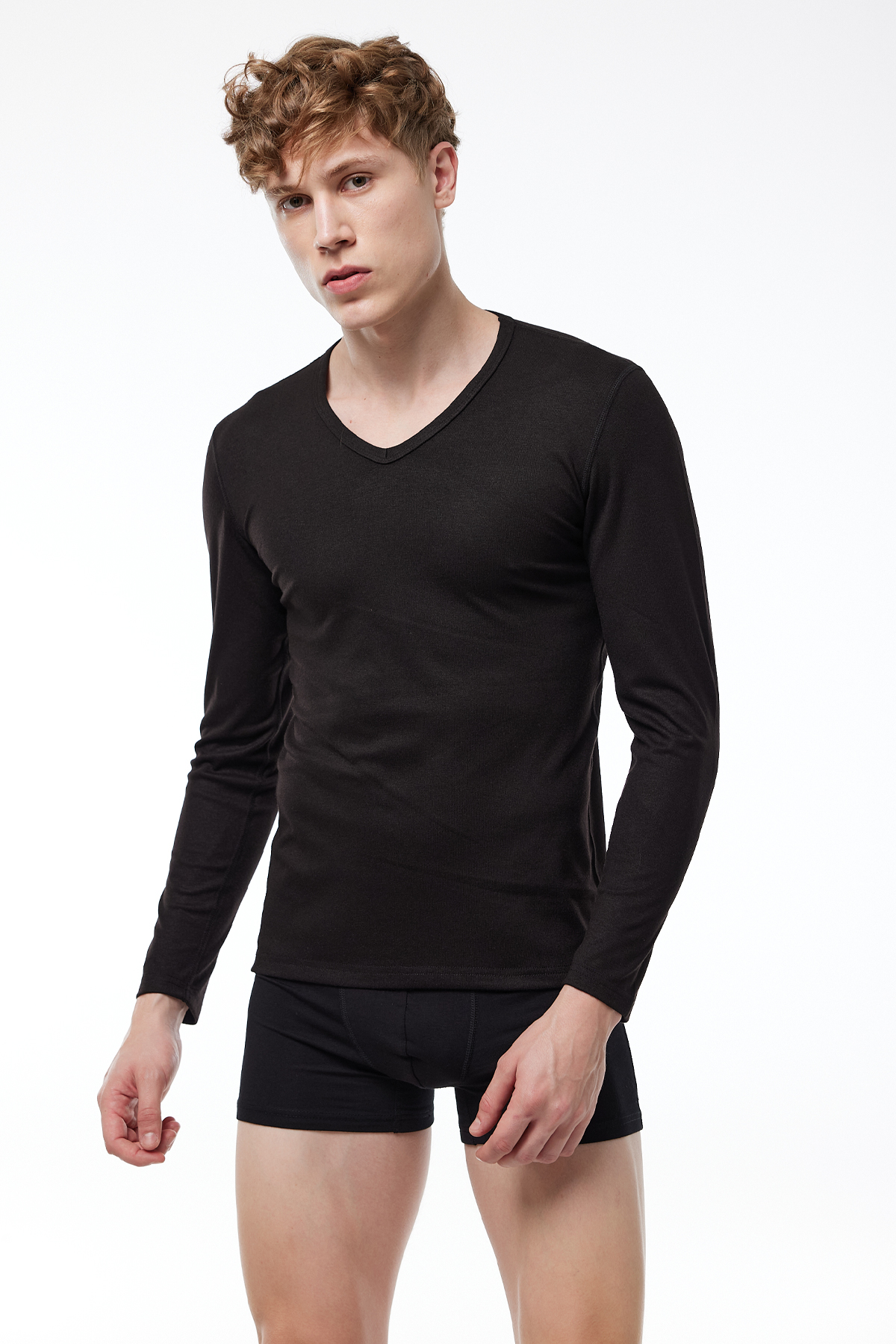 Malabadi Erkek Siyah V Yaka Uzun Kollu Viloft Termal Üst İçlik 608
