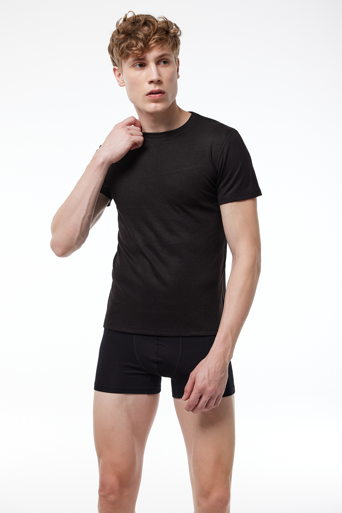 Malabadi Erkek Siyah Yuvarlak Yaka Kısa Kollu Viloft Termal Üst İçlik 606