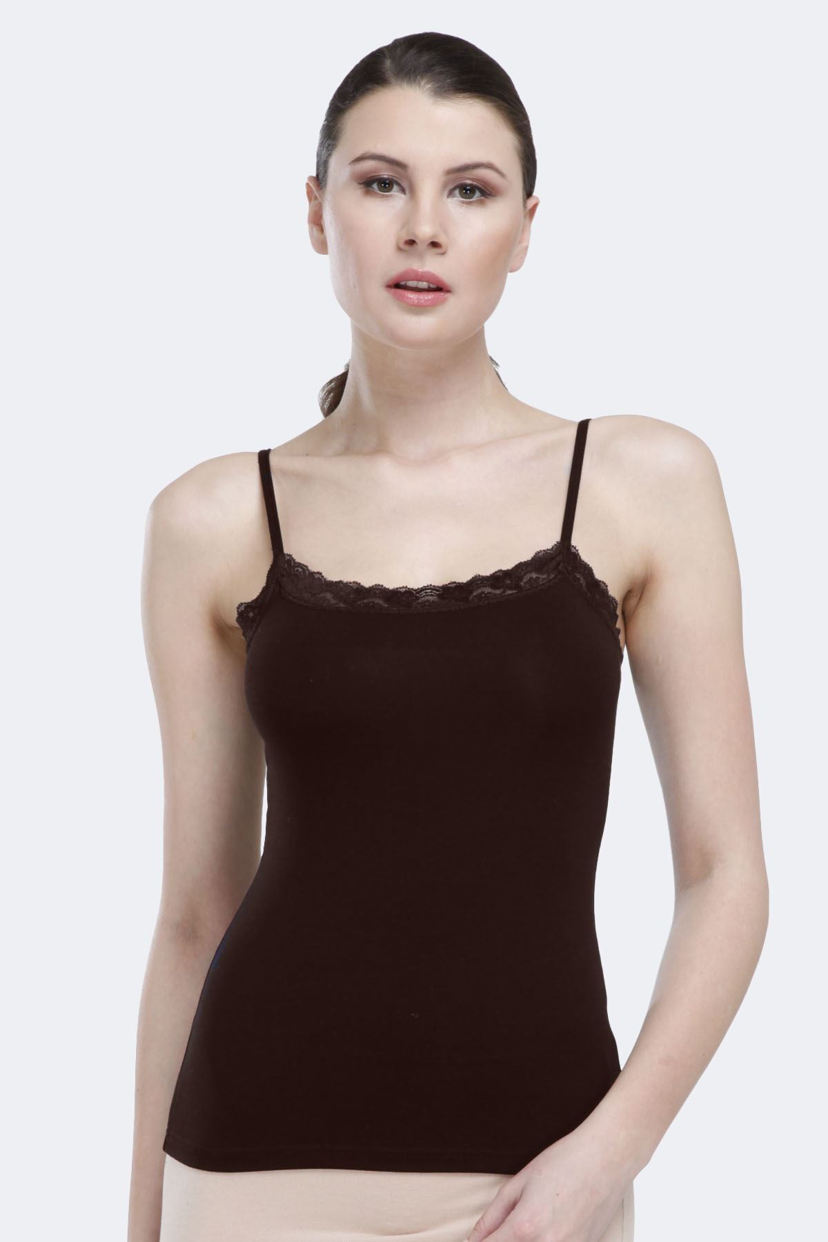 Malabadi Kadın Kahve Ayarlanabilir İp Askılı Güpürlü Modal Atlet 141