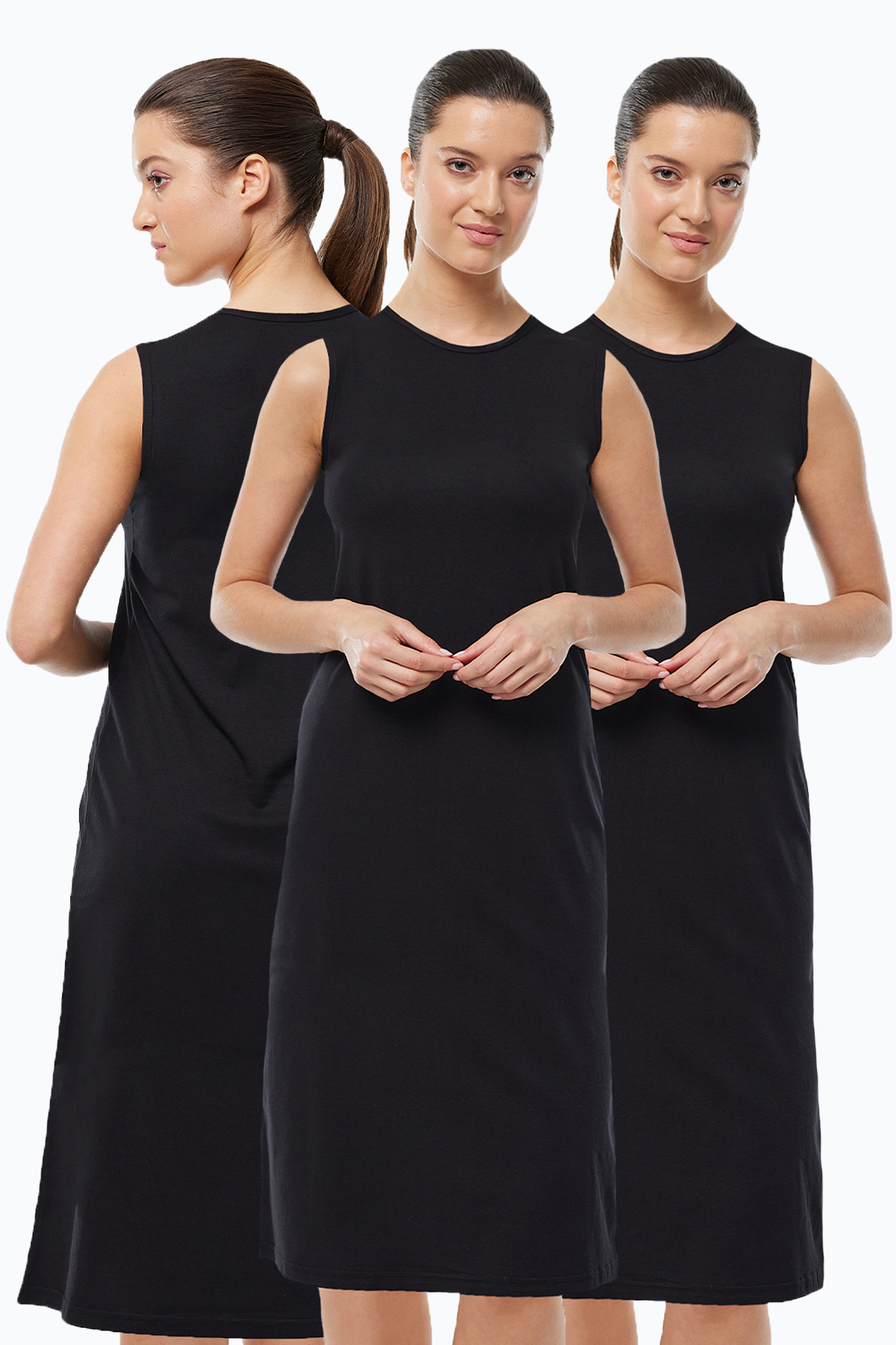 Malabadi Kadın Siyah 3 lü Set Uzun Kolsuz Elbise Astarı Modal Kombinezon 3M1049