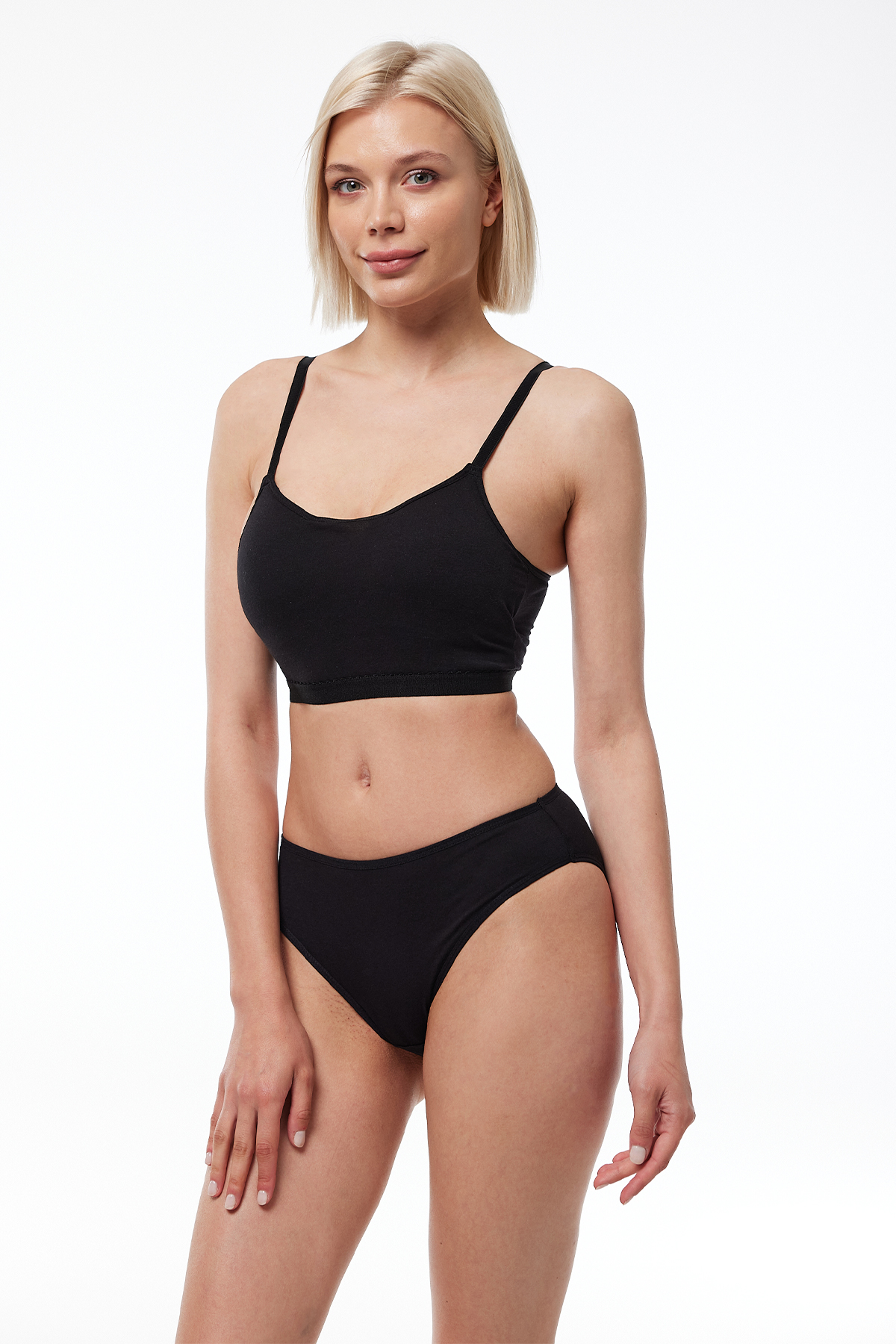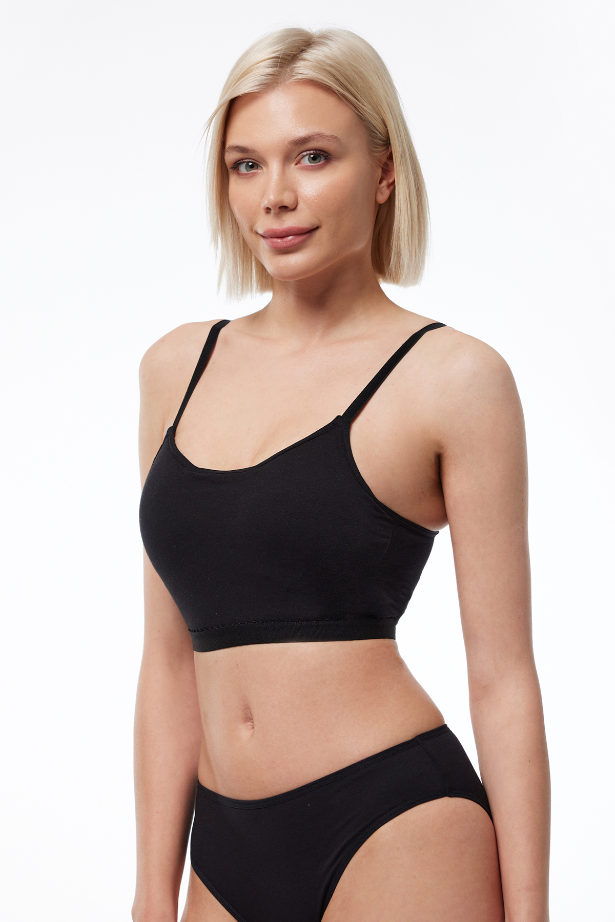 Model üzerindeki sütyen bedenleri 85-B Cup olarak kullanılmıştır.