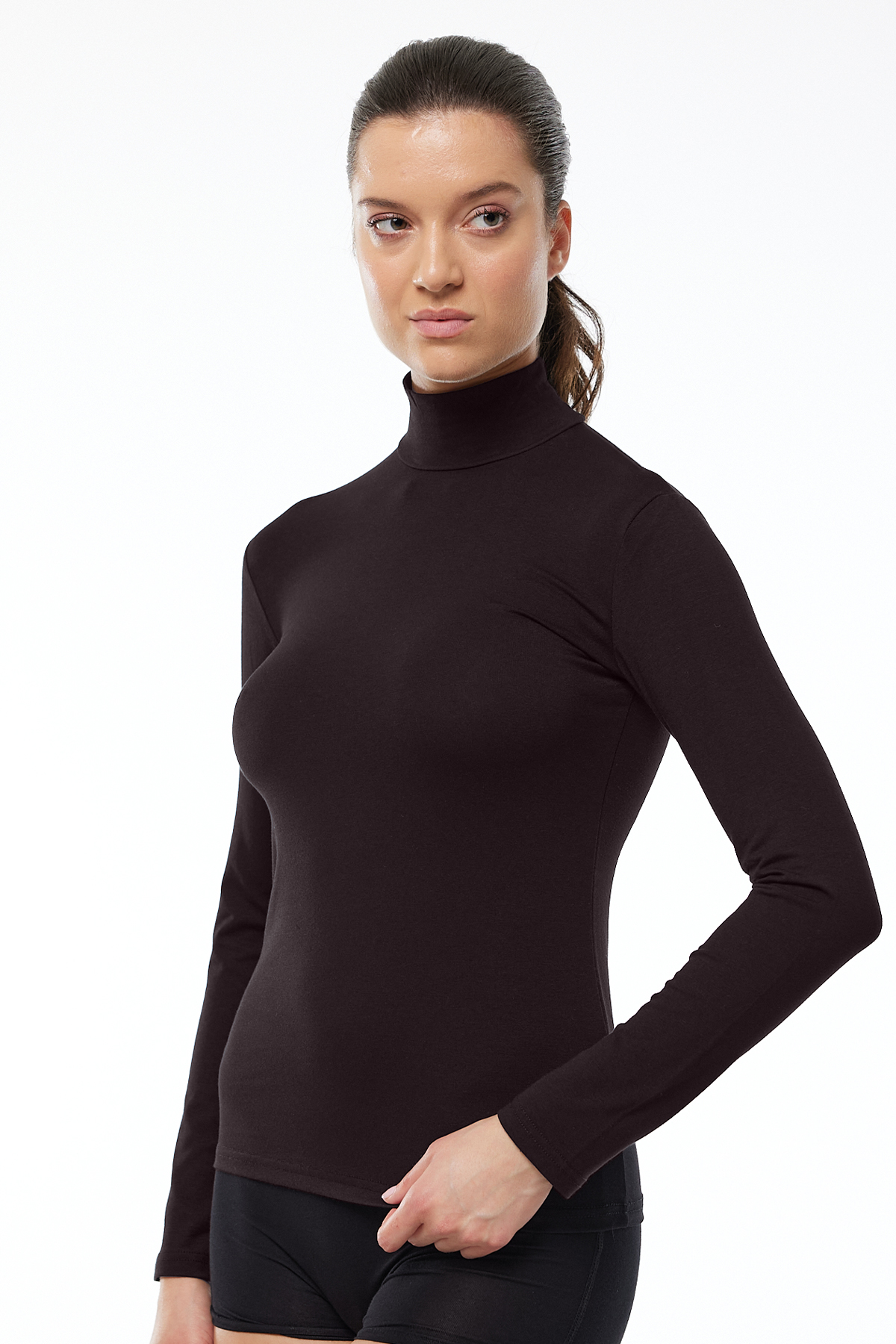 Malabadi Kadın Kahve Uzun Kollu Yarım Balıkçı Yaka Modal Body 180