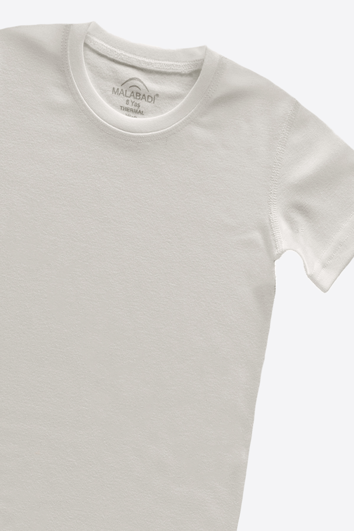 Malabadi Unisex Çocuk Ekru Kısa Kollu Viloft Termal Üst İçlik 402